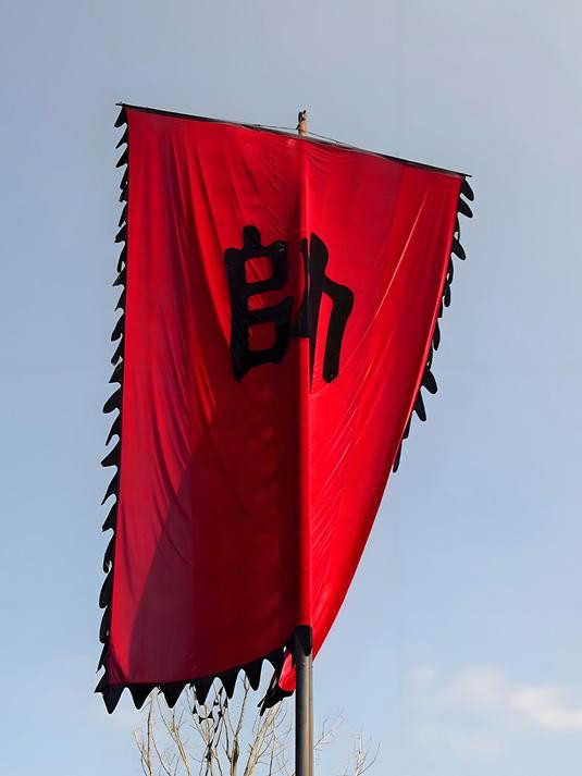 Лицо главнокомандующего, находящегося во главе кавалерии, было невозмутимым. Он спокойно сказал фразу «Добро!» и подогнал ахалтекинскую лошадь под бедрами продолжить движение. Этому человеку было, по грубому подсчету, немного больше тридцати лет, в красном платье и золотых доспехах, высокого роста, в руке он держал машо4. Не упуская из виду мелочей, отдавал солдатам команды ликвидировать оборонительные сооружения на пути. Дождавшись, когда пехотинцы полностью устранят препятствия на дороге, особый отряд кавалерии снаружи городских врат вошел непрерывной чередой и, обступая генерала в черной одежде и золотых доспехах, подстегивая лошадей, примчался к генералу в красных одеждах.